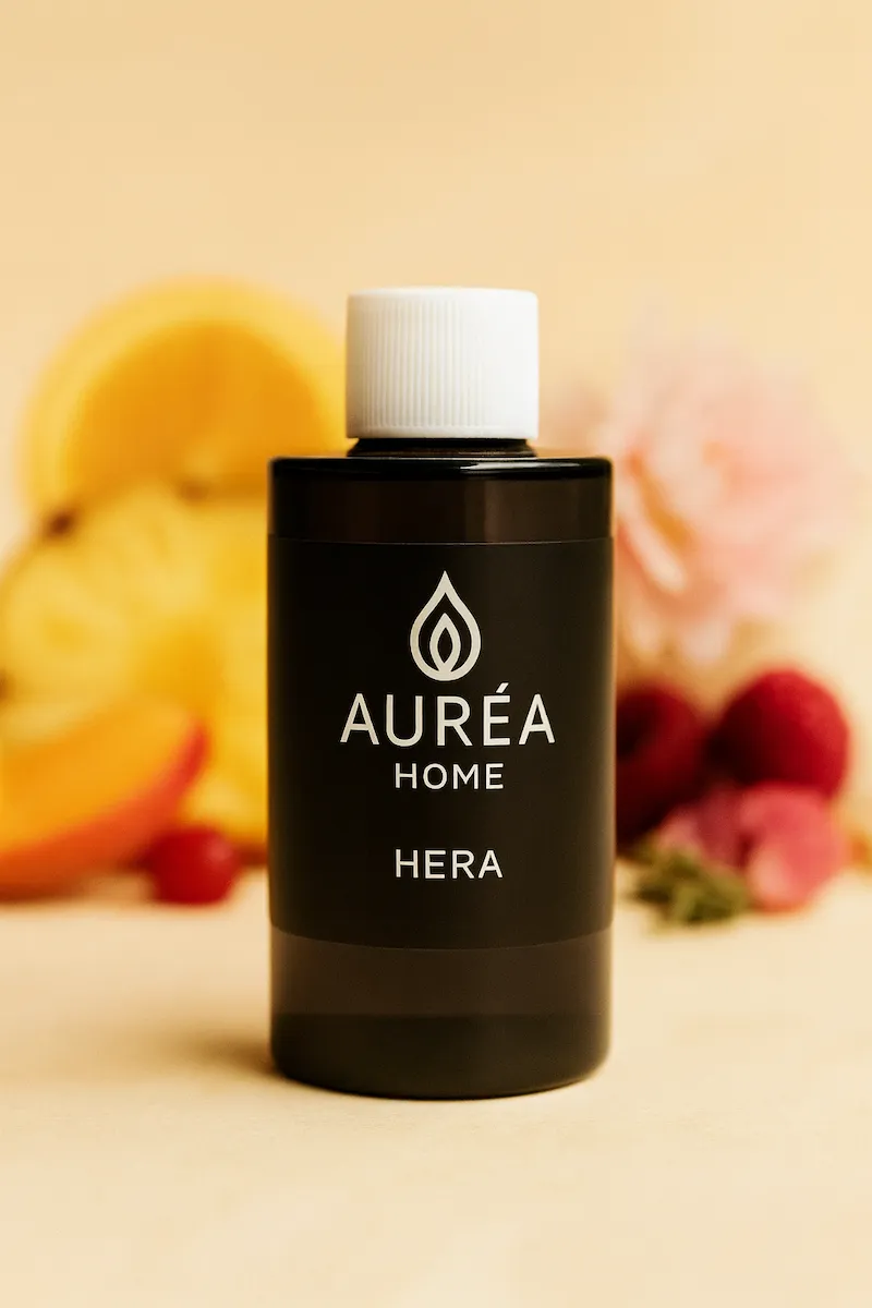 Hera es el aroma de la confianza y la elegancia natural — perfecto para llenar los espacios con una sensación de luz, frescura y poder sereno.